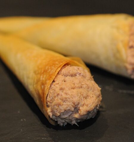 - Couper les feuilles de brick en deux puis déposer la farce au centre en bas en laissant un bord